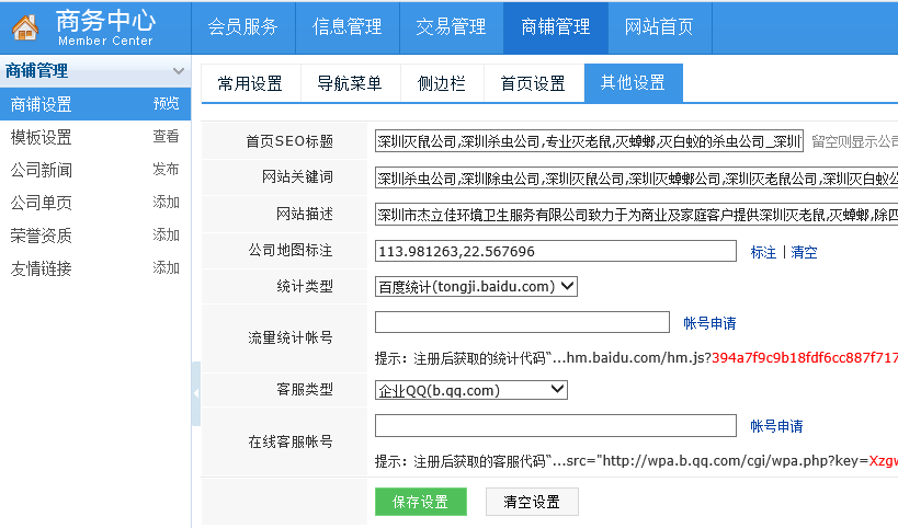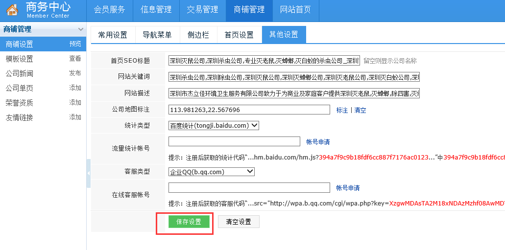 1、登陆本站---进入“商务中心”---商铺管理---商铺设置,见下图: