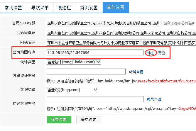 4、返回设置后,点”保存设置“。 重新打开您公司的“联系方式”看看,是不是已经有了正确的地图标示,见下图: