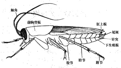 蟑螂或称蜚蠊,是现存最古老的昆虫之一。它的俗称很多,有茶婆虫、茶婆子、偷油婆、货郎、灶蚂蚁。蟑螂体形呈椭圆,背腹扁平,可以在狭窄的缝隙、洞穴中自由出入。蟑螂体长平均20-25毫米,小的不到15毫米,而大的则可达到35毫米,身体颜色因种类不同而有差异,有红褐色、深褐色和浅灰色;有的种类身体表面还具有油状光泽。