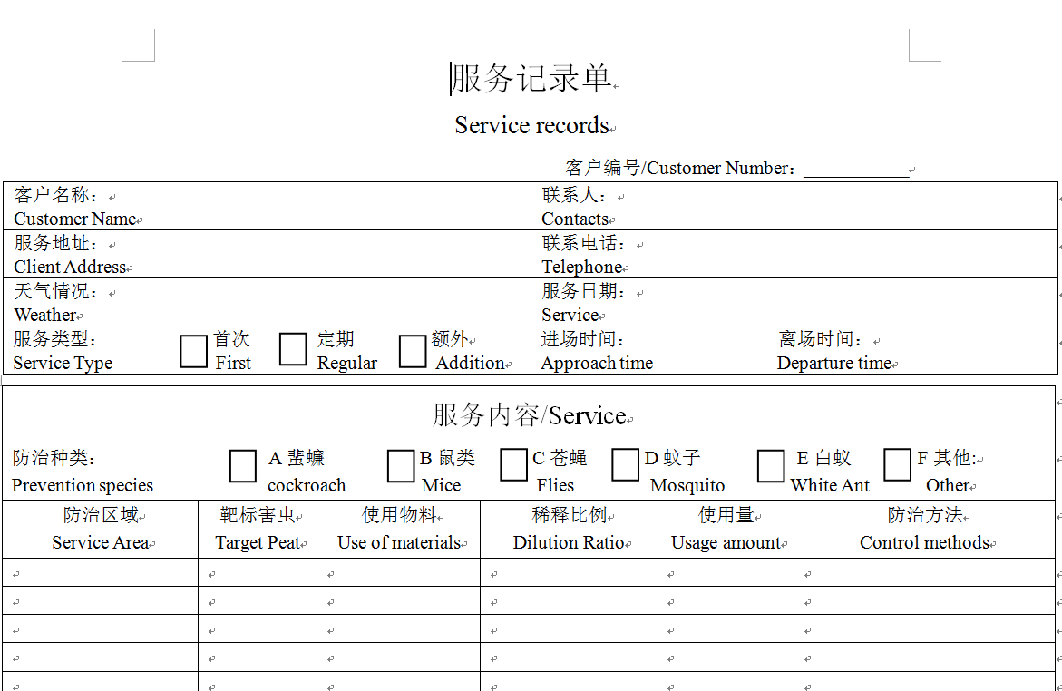 现场虫害服务记录报告单