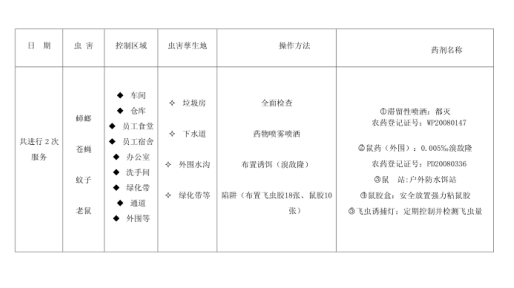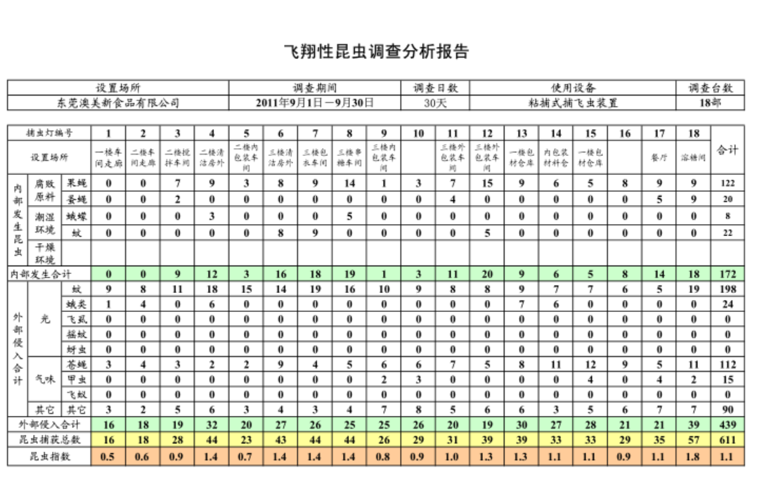 大型虫害公司针对食品工厂进行的月度虫害趋势月度总结报告