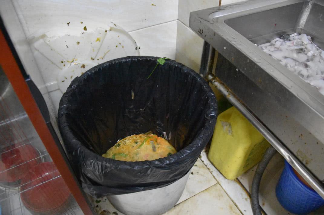 (后厨垃圾桶未加盖,不符合要求)