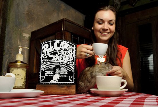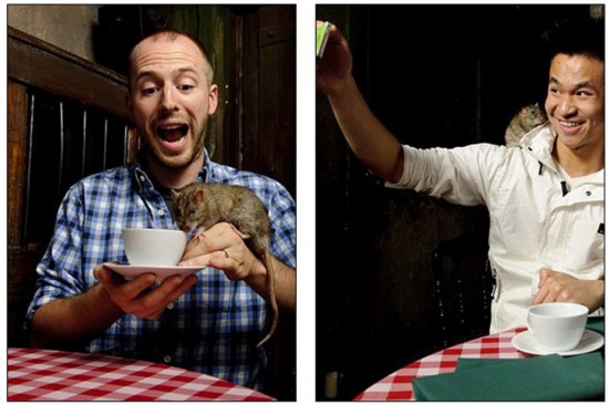 老鼠咖啡屋的灵感源于当前日本流行的“猫咖啡屋”,那里的顾客午休时可在猫的陪伴下吃午餐。而伦敦的老鼠咖啡屋中,则是老鼠相陪。如果你胃口够好,也可在老鼠咖啡屋中就餐。