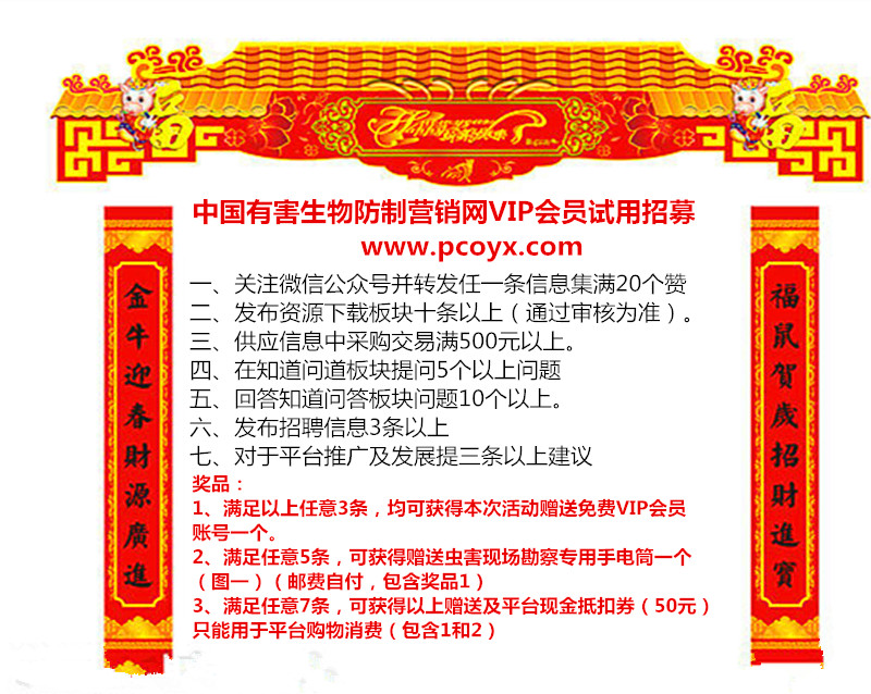 中国有害生物防制营销网恭祝新年大喜特送好礼