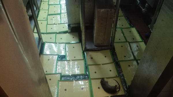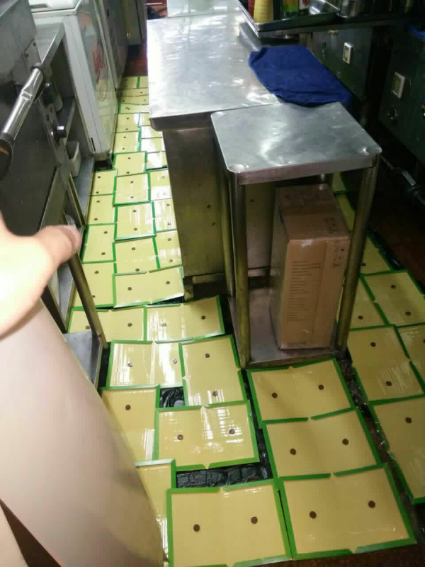 堵是堵住了,可居然把老鼠堵在厨房了,我连继一个礼拜,天天晚上过去设鼠控点,诱饵换了好几种,10多块粘板并排拦在蒸箱和灶台中间,并且装了摄像头,可还是没有抓到或看到它,不过早班反应看不到它了。我松口气,终于见效了,猜它可能是中毒死在了某角落。在厨房找一只新鲜的死老鼠难度很大,只等它发臭了。可等了一个多礼拜,等到的不是死老鼠的消息,而是那它又活蹦乱跳的在老地方出现了。