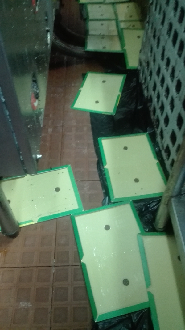 地上很湿,先铺了一层垃圾袋。