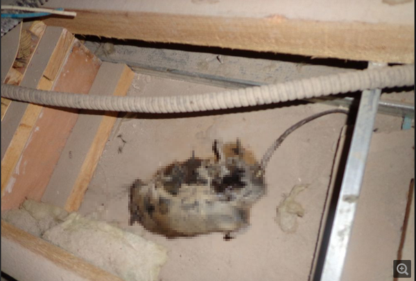 cript>cript>死在吊顶上的老鼠,已经重度腐烂,生的蛆把尸体吃的差不多了,没的吃就到处爬,有一些落到了地面上