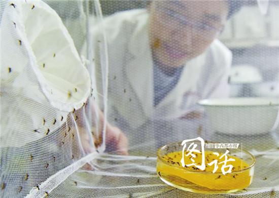 在四川省疾病预防控制中心寄生虫病预防控制所的养蚊室内,有成千上万只蚊子,它们不但可以“吹着空调唱着歌”,还能每天喝到专人调制的蔗糖水。这些没有被污染过试验用蚊,经常被用来做抗药性实验。