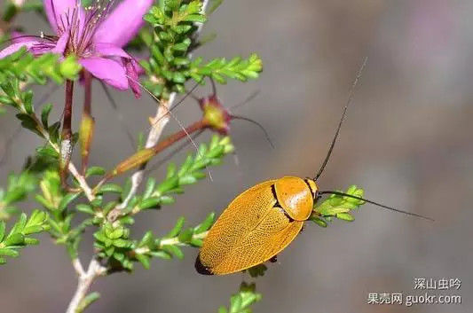 Eucorydia aenea dasytoides带纹绀蠊是很喜欢呆在花上的日行性蟑螂。