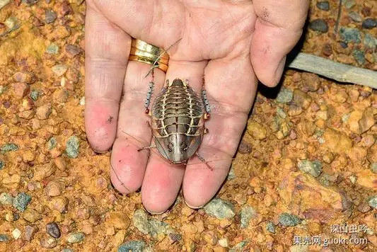 澳大利亚,日行性无翅蟑螂Polyzosteria mitchelli爬上拍摄者的手