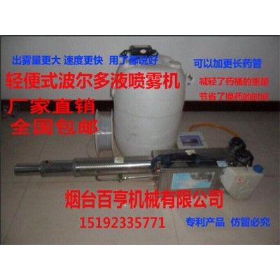 - 供应专利技术轻便式大容量波尔多液石硫合剂弥雾机价格