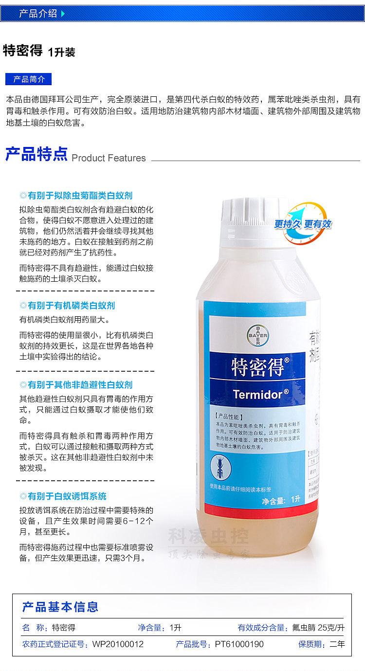 德国进口白蚁药特密得氟虫腈全巢死亡家居装修防治1000毫升