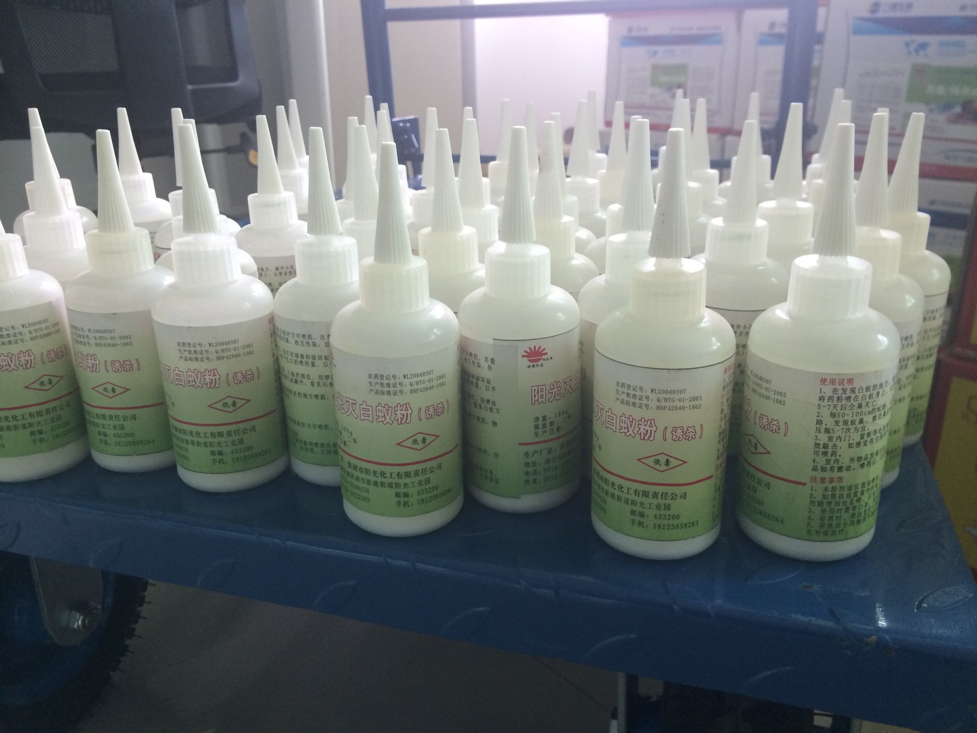 使用说明:1、在发现白蚁的地方,挑开小孔,看见白蚁时方可喷药,尽量将药粉喷在白蚁身上,让更多的白蚁带粉回巢,互相传染,5-7天后全巢灭亡。