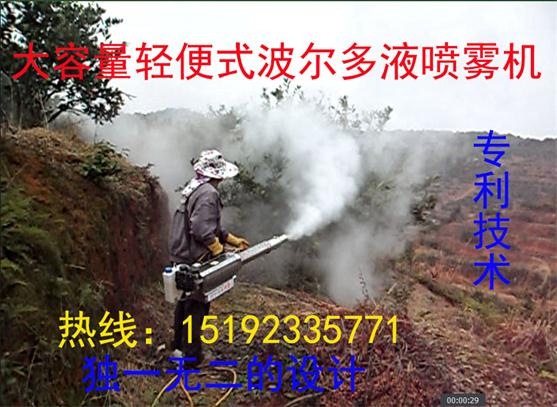 国内第一台具有自主知识产权的风冷、水冷、烟雾、水雾波尔多液喷雾机的问世,切底解决了农民朋友使用传统方法喷洒波尔多液对人身伤害的难题,并且摆脱了太阳暴晒的烦恼,让你在喷洒农药的过程中更轻松自在。