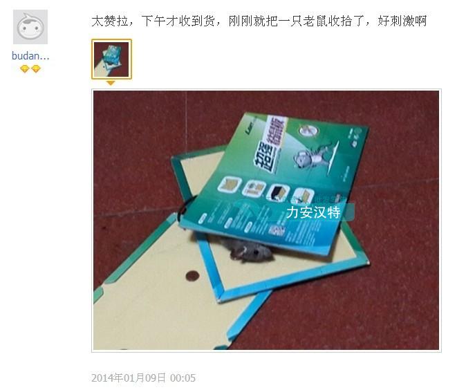3.为防止老鼠挣扎拖动粘鼠板,可用双面胶带固定于地面。