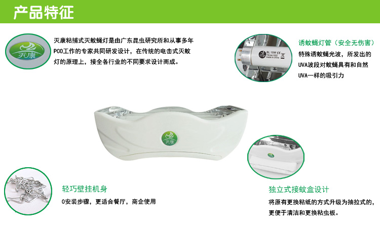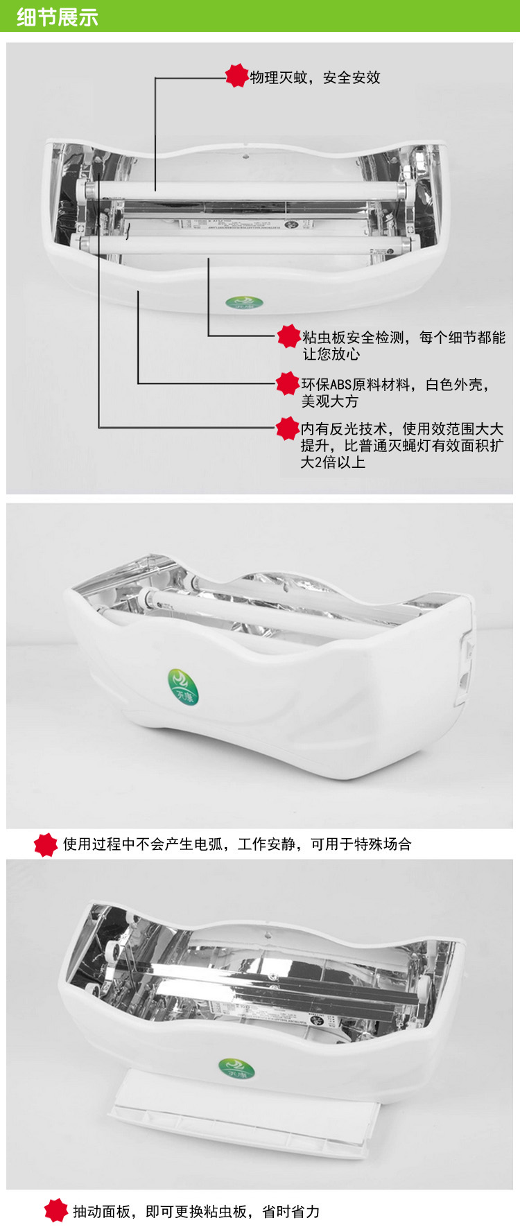 捕蚊蝇面积:内部反光面扩大面积为100平方/台
