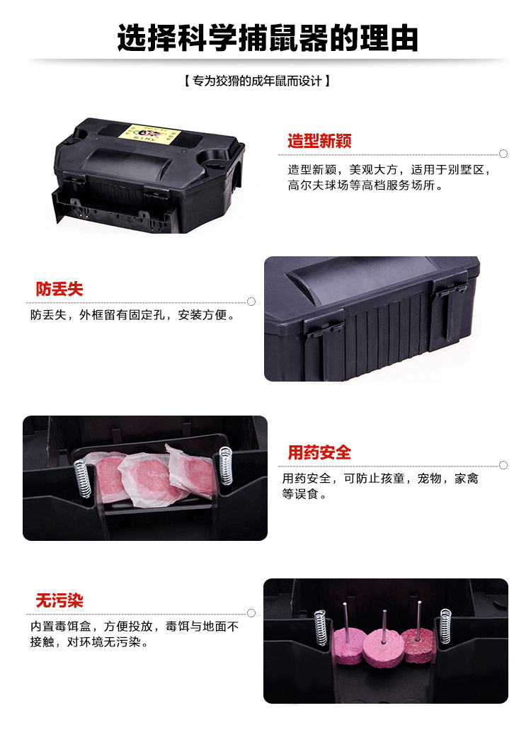 洁万家大号带铁丝灭鼠毒饵盒造型新颖投放方便