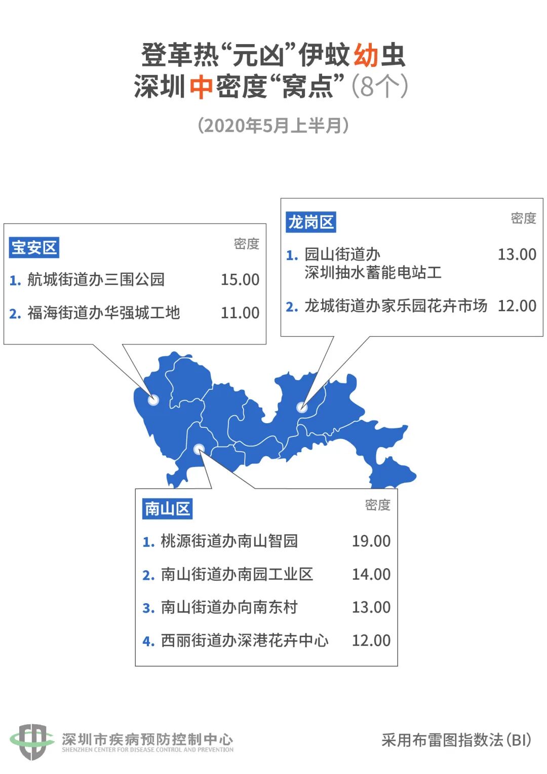 5月18日,深圳市疾控中心发布了5月上半月(5月1日-15日)的全市伊蚊密度监测结果。
