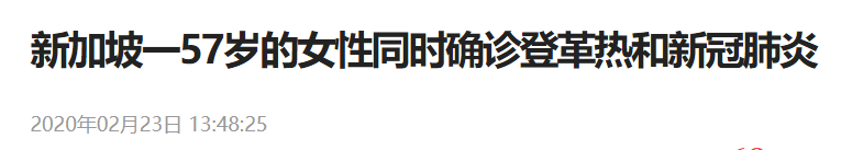 今年2月,新加坡还曾出现1例同时确诊感染新冠病毒和登革热的患者。